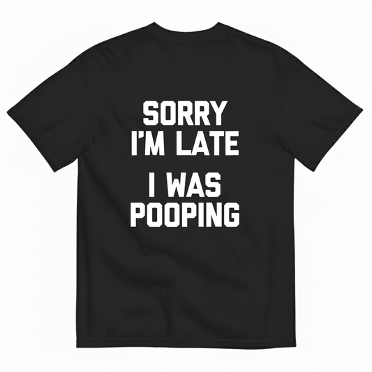 SORRY I'M LATE, I WAS POOPING T- SHIRT
