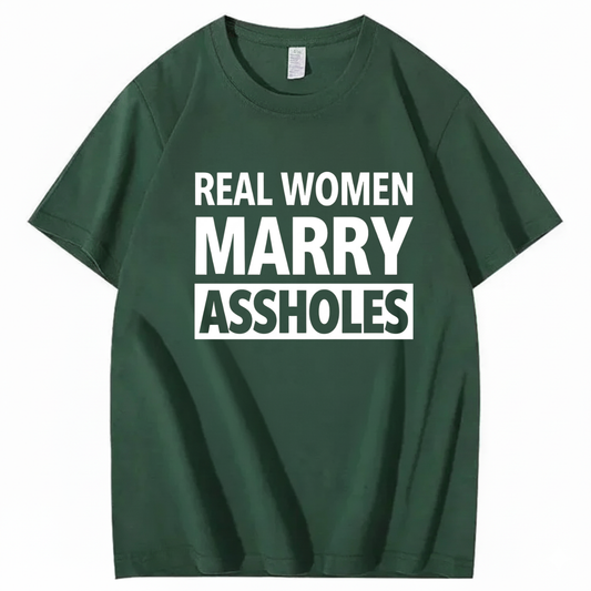 REAL WOMEN MARRY ASSHOLES T - SHIRT (FRONT PRINT)