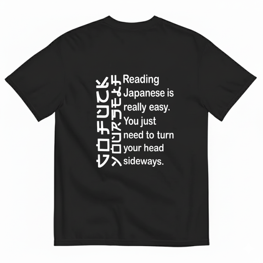 READING JAPANESE IS REALLY EASY. YOU JUST NEED TO TURN YOUR HEAD SIDEWAYS T- SHIRT