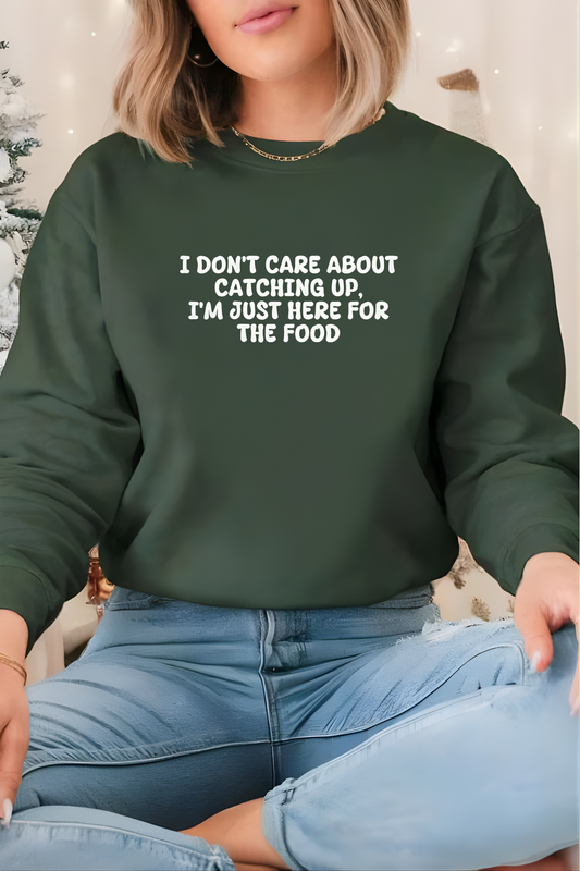Unisex Crewneck Sweatshirt “I’m Just Here For The Food” – Black, Long Sleeve, Relaxed Fit